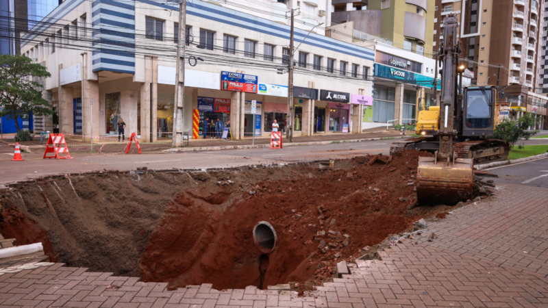 Equipes da Prefeitura de Maringá realizam obras no canteiro central da Avenida São Paulo