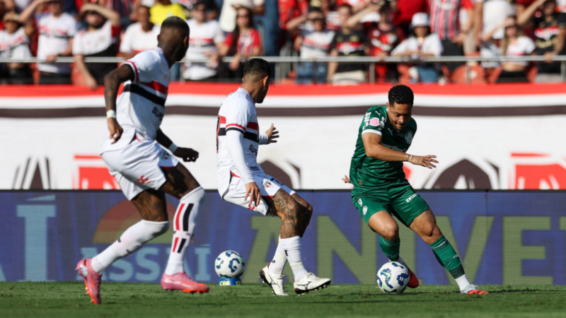 Jogando no estádio do Morumbi, o Palmeiras aplicou uma virada épica no São Paulo e venceu o rival por 3 a 2, no domingo (05), com gols de Vitor Roque, Flaco López e Ramón Sosa. Com o triunfo, o Verdão assumiu a liderança do Campeonato Brasileiro com 55 pontos conquistados – o Flamengo possui a mesma pontuação, mas com uma vitória a menos.