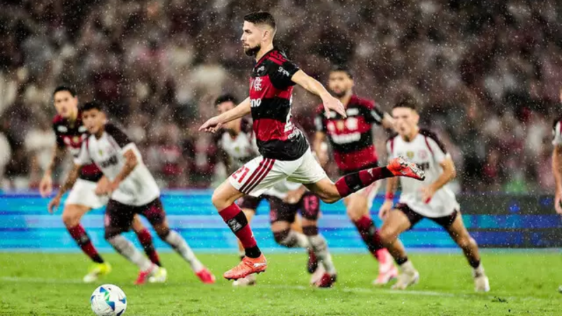 A resposta veio rápido. Aos 33’, Varela cruzou na área, Carrera desviou com o braço e o pênalti marcado. Arrascaeta cobrou no canto direito do goleiro e empatou, fazendo o seugol de número 101 com o Manto Sagrado: 1 a 1. Na segunda etapa, o cenário seguiu o mesmo: pressão rubro-negra contra um Lanús fechado. As mudanças promovidas por Filipe Luís aumentaram o volume ofensivo, especialmente com a entrada de Jorginho.